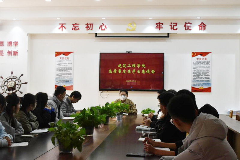 本网讯 3月2日 ,建筑工程学院召开高质量发展学生恳谈会,全面了解和解答学生在日常学习生活中遇到的困难。该院党总支副书记戴敏,团总支副书记马俊原,辅导员杨永武、李祖勇老师及各班学生代表参加了此次恳谈会。