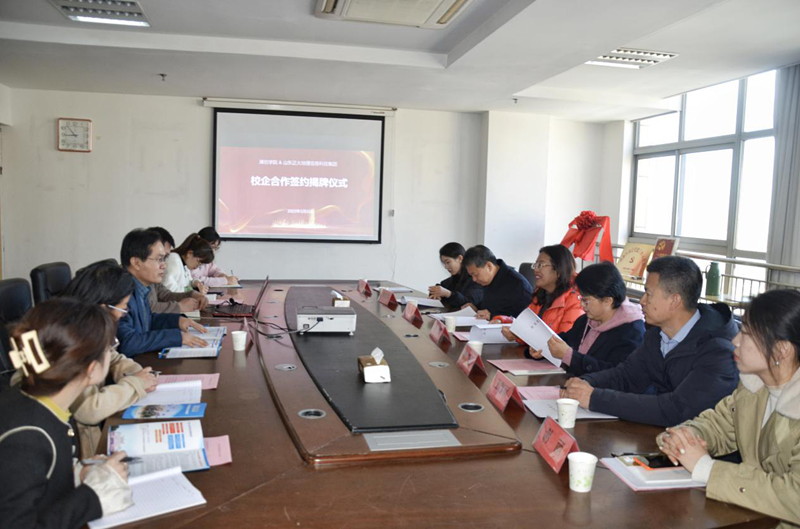 走访中,该院党总支书记周莹、副书记郑栋鹏,就业服务中心主任葛红丽分别向企业详细介绍了学校和学院的发展近况。双方围绕企业现状、人才培养、校企合作、发展路径和合作意向等方面进行了深入探讨,共同查找学科专业设置、就业服务等方面存在的短板,为细致做好就业指导服务、加强就业政策宣讲做充足的准备。数学与信息科学学院负责同志与企业负责人签订了就业实习基地建设及相关教科研合作协议,并共同为“潍坊学院就业实习基地”揭牌仪式。