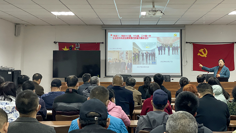 楚爱丽以《向着民族复兴的新征程阔步前进》为题,围绕党的二十大召开的重大意义、报告的精神内涵、过去5年的工作和新时代10年伟大变革的里程碑意义、马克思主义中国化时代化新境界以及中国式现代化全面推进中华民族伟大复兴的使命任务等方面,对党的二十大提出的新思想新论断、作出的新部署新要求,进行了全面阐释和系统讲解。讲课结束时现场响起了长时间热烈的掌声,大家纷纷表示,楚教授声情并茂、旁征博引的精彩报告进一步提高了全体党员对党的二十大报告精神的理解和把握,受益匪浅。