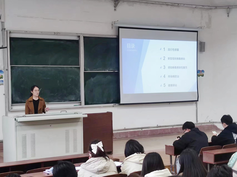 此次讲座由校医院主治医师赵娜娜担任主讲人。赵娜娜传达了3月9日“潍坊市高新区学校春季传染病防治与学生应急救护知识培训会”的相关内容,讲解了甲型流感、新冠病毒感染、水痘、诺如病毒等春季传染病的症状、治疗及预防措施,介绍了学校健康驿站的使用情况和工作流程。