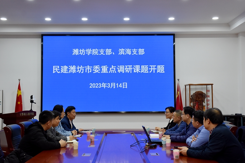 本网讯 近日,民建潍坊学院支部联合滨海支部在学校天一楼举行民建潍坊市委重点调研课题开题会,民建潍坊市委会副主委王鑫主持会议,计算机工程学院书记张晓静出席并讲话,课题组全体成员参加会议。