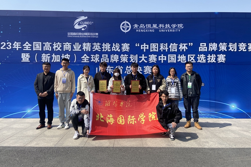 本网讯 4月8日-9日,2023年全国高校商业精英挑战赛-品牌策划竞赛山东总决赛在青岛恒星科技学院落下帷幕。北海国际学院共有三支参赛队伍进入山东省总决赛,在决赛中稳定发挥,均获得三等奖。