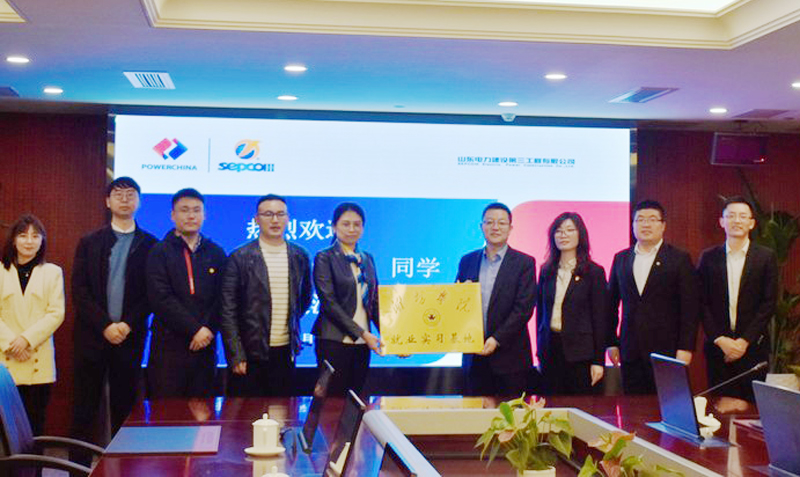 在山东电力建设第三工程有限公司,师生代表共同参观了企业文化展馆,详细了解了企业发展历程、历史沿革,以及企业在全球各地的重大项目。座谈会上,校企双方就校企合作育人进行了交流。公司人事部副经理何茂梁与戴敏,共同为“潍坊学院大学生就业实习基地”揭牌。