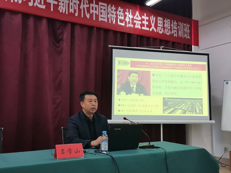 吕学山主要围绕党的二十大的主要议程及成果、党的二十大报告主要内容解读以及如何学习党的二十大精神,努力办好人民满意的教育三大部分进行了全面、详细的阐释。