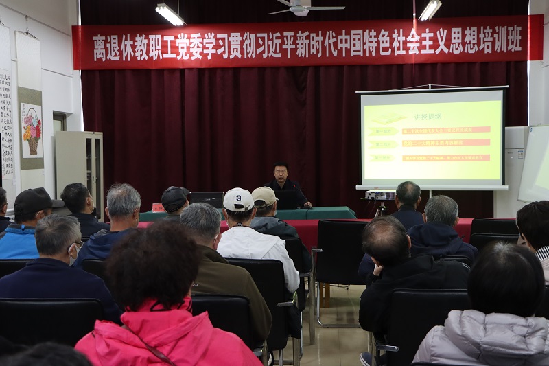 本网讯 4月25日,离退休教职工党委举办学习贯彻习近平新时代中国特色社会主义思想培训班,党委书记王维志主持,吕学山教授作题为《以中国式现代化推进中华民族的伟大复兴——党的二十大精神解读》的报告。