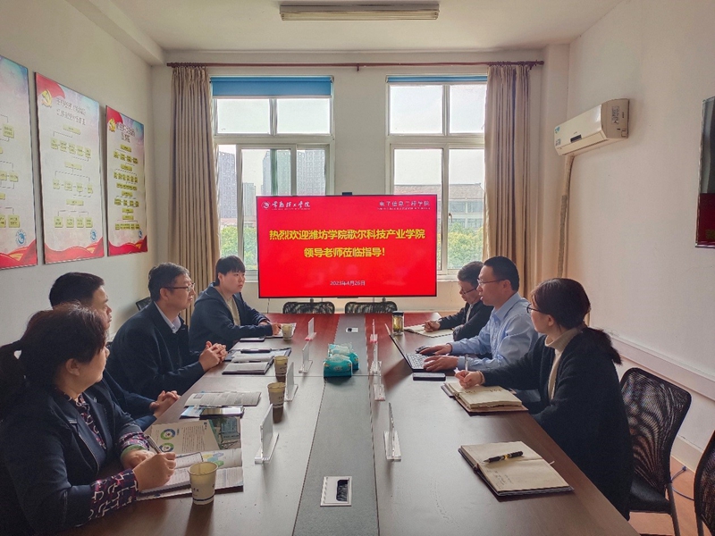 本网讯 4月26日,歌尔科技产业学院副院长侯崇升带队赴常熟理工学院电子信息工程学院开展产业学院建设调研交流活动,院长助理、本科专业教研室主任谷善茂、办公室主任王燕及科研秘书崔琳琳一同参加调研。常熟理工学院电子信息工程学院副院长张惠国,副书记、副院长邱竹,电子科学与技术系主任范瑜参加座谈。
