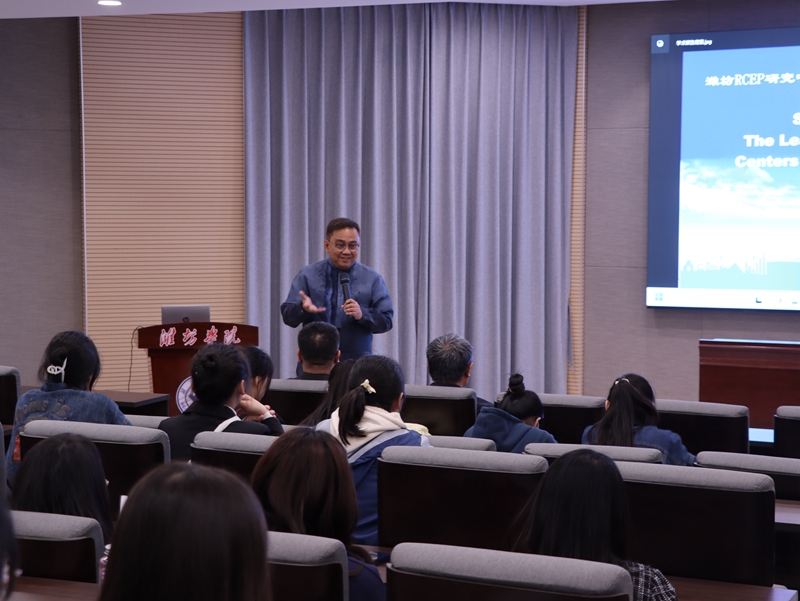 访学期间,NELSON C.TANTOCO教授参观了研究中心展厅、校史馆、潍坊文化名人馆;为学生作了题为《Shared Strategic Leading: The Leadership of Academic Deans of Centers of Excellence in the Philippines》学术报告;参加了多场学术研讨会,与研究中心研究员们就相关专业学术问题进行了广泛交流与深入研讨,就我校与亚洲三一大学双方研究人员互访,开展线上、线下学术交流等问题交换了意见,初步达成了合作意向。