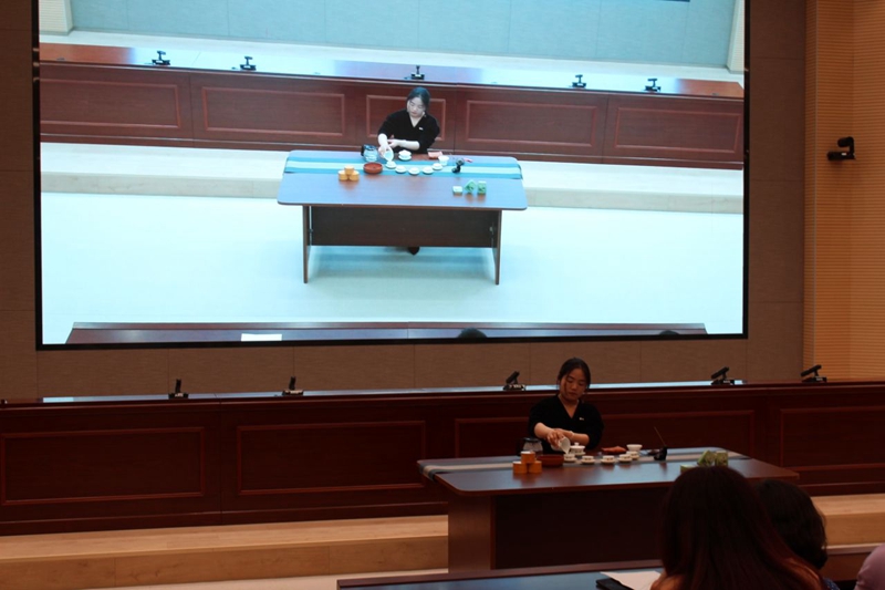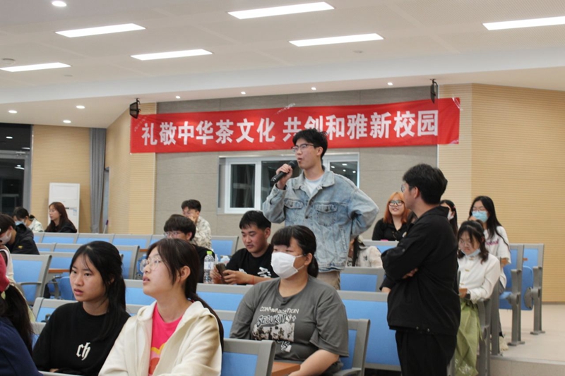 活动邀请福建武夷山国家级自然保护区正山茶业有限公司代表范笑琳作茶文化分享。活动在优美的茶艺表演中展开,范老师以正山红茶为演示,形象生动地传达茶文化的意境之美。范老师用猜茶问答及知识讲解的互动形式,带领大家进行了一场美妙的茶文化之旅。她分享了茶的发展历史,从唐代煎茶、宋代点茶到明清泡茶,再到当代饮茶,围绕茶叶的分类与功效,介绍了中国的名茶,带领同学们一步步走近茶文化,感受中华传统文化的源远流长与博大精深。讲座期间范老师与学生进行积极互动,现场气氛活跃,有效增进了同学们对中国茶文化的了解,提升了同学们对中国茶与茶文化的学习兴趣。