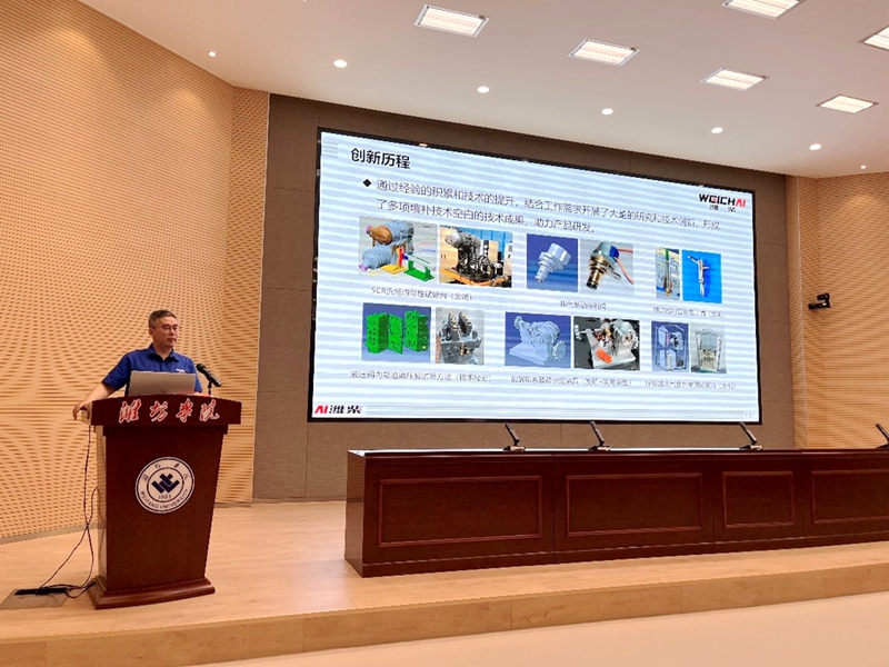 宣讲会上,汤海威谈了个人成长和团队创新经历,介绍了潍柴企业创新体系。他指出,大好时代为广大青年提供了广阔平台和无限可能,个人的成长要注意从点滴积累,更要学会团队合作,凝心聚力才能办大事。他希望同学们能够扎根专业,精益求精,为国家和社会作出自己应有的贡献。