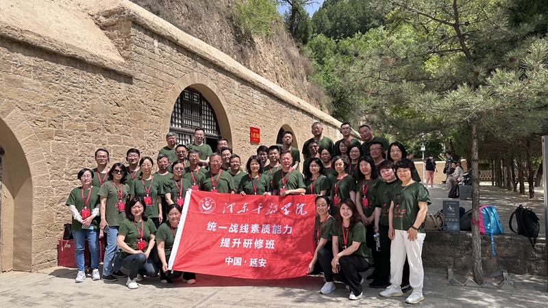 本网讯 5月13日至17日,山东高校统战工作理论研究基地(青岛科技大学)主办,潍坊学院、山东科技职业学院统战部门协办的统一战线素质能力提升研修班在延安大学泽东干部学院举办。学校党派团体骨干代表、统战干部10人参加。研修班以“凝心铸魂强根基、团结奋进新征程”为主题,政治领航固圆心,主题教育守初心,学员们认真聆听了《延安时期中国共产党的统一战线及其经验启示》《延安精神及其时代价值》等专题报告,进一步增强了对中国共产党的历史认同、情感认同、理论认同、政治认同。在延安革命纪念馆、杨家岭、枣园、王家坪等革命旧址的体验式学习中,学员们深刻体会了中国共产党建立的抗日民族统一战线在新民主主义革命中发挥的巨大作用。《白求恩精神》《习近平在梁家河的为民情怀与实干担当》为题的现场教学和在张思德塑像前齐诵《为人民服务》、“四·八”烈士陵园向革命先烈敬献花篮的沉浸式教学,使学员们对中国共产党人的初心和使命有了更加深刻的切身感悟。