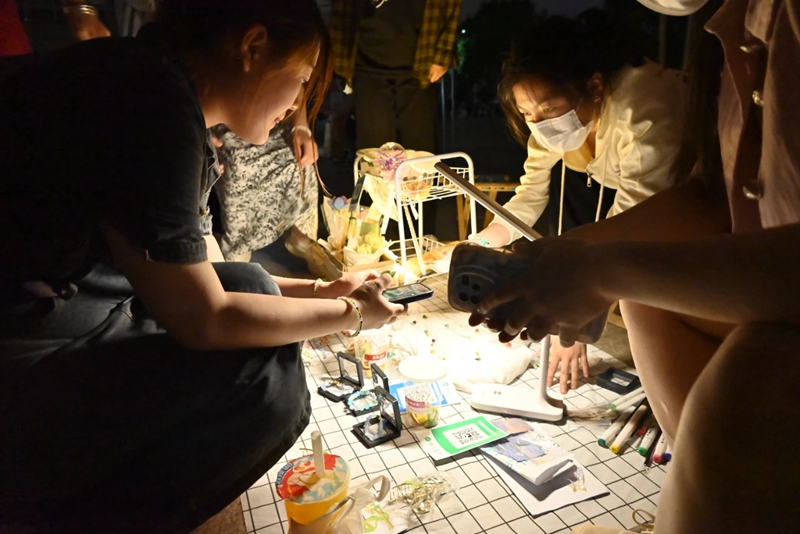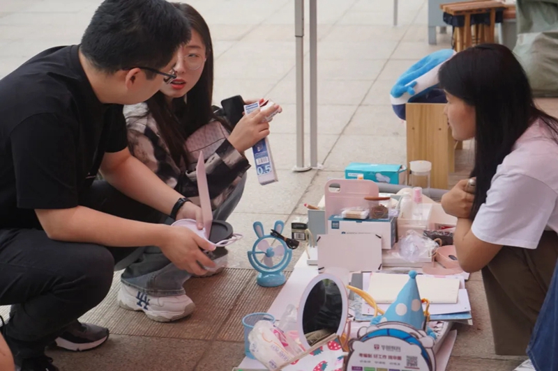 活动现场,异彩纷呈。每一个摊位前都挤满了前来“寻宝”的同学,意趣生动的宣传标语,热情洋溢的学长学姐,琳琅满目的各色商品,都引得同学们驻足停留。吆喝声和叫卖声此起彼伏,现场的氛围可谓是热火朝天。