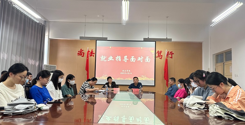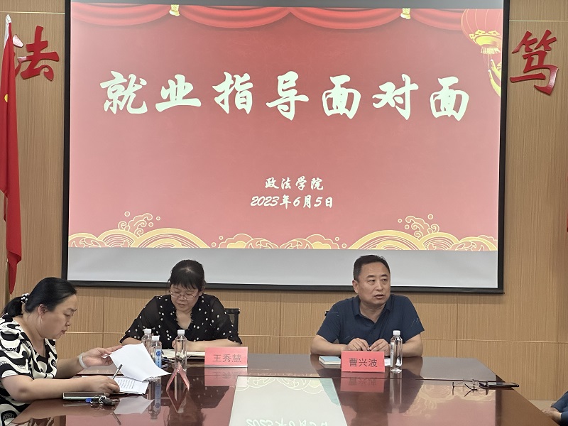 本网讯 6月5日下午,政法学院召开“就业指导面对面”专题交流。学生工作处副处长、就业指导中心主任王秀慧,生涯发展指导中心主任李静到场交流。会议由学院党总支书记曹兴波主持。