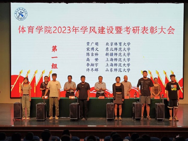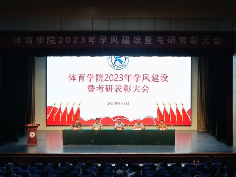 本网讯 6月8日,体育学院2023年学风建设暨考研表彰大会在图书馆报告厅举行。该院领导班子成员、全体辅导员、今年考研录取的学生和各年级的学生代表参加会议。