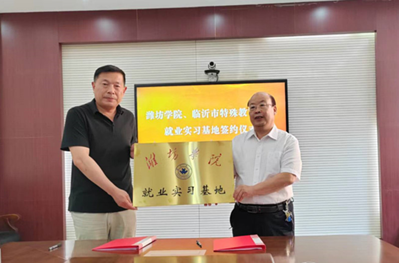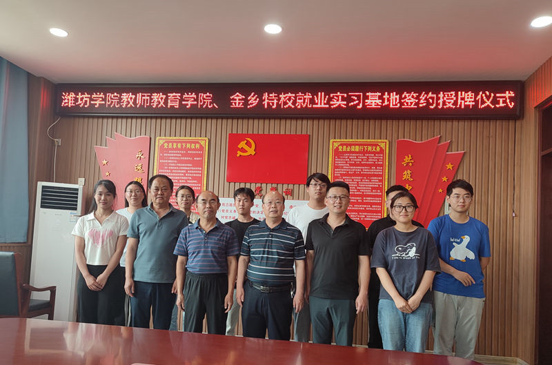 本网讯 6月7日-10日,教师教育学院院长魏晨明一行4人到肥城市特殊教育学校、曲阜市特殊教育学校、汶上县特殊教育学校、金乡县特殊教育学校、临沂市天使国际特教学校、临沂市特殊教育学校、莒南县特殊教育学校看望实习学生,与实习学校进行就业实习基地签约并授牌。