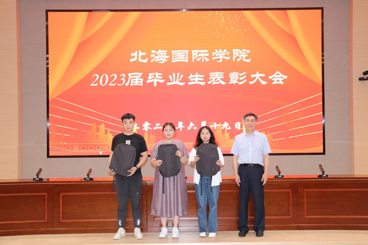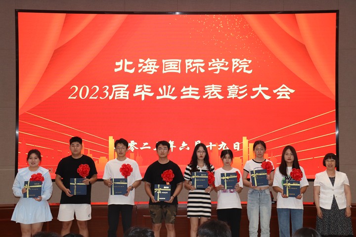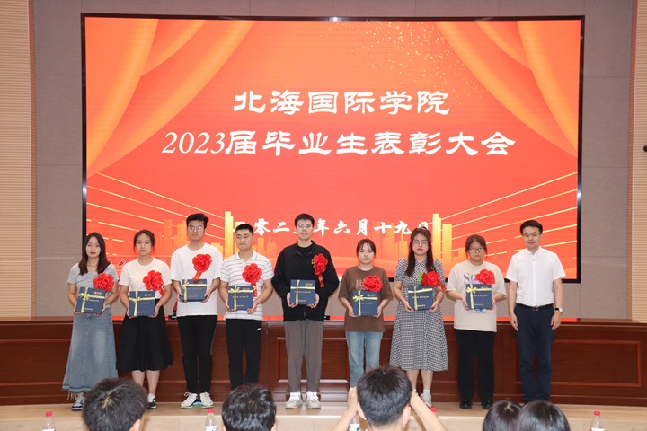 本网讯 6月19日,北海国际学院2023届优秀毕业生表彰大会在学校学术报告厅举行,北海国际学院党总支书记、院长胡胜军,副院长张继文、王波出席表彰大会,该院全体辅导员、2023届毕业生参加大会。