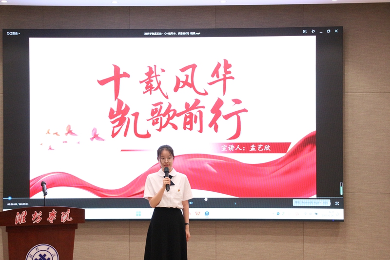 本网讯 为深入学习宣传贯彻党的二十大精神,引导广大青年学生用青年视角讲好中国故事、发好时代新声,6月26日,潍坊市首届“新时代 新青年 新使命”大学生宣讲比赛决赛在我校举行。来自全市10所高校的大学生选手紧扣时代背景,结合自身学习与实践,讲述新时代青年大学生的爱国情怀与奋斗故事,展现了新时代青年人的时代风貌与使命担当。