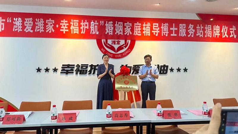 本网讯 6月30日,我校与市妇联、市民政局联合成立的潍坊市婚姻家庭辅导博士服务站揭牌暨授旗仪式举行。市妇女联合会主席高志秀出席并讲话,我校合作发展处处长张华,教师教育学院(特教幼教师范学院)副院长倪烈宗、博士王元元出席。