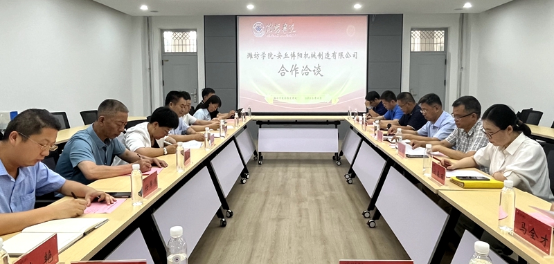 本网讯 7月10日下午,安丘博阳机械制造有限公司总经理闫吉祥一行8人来校进行项目合作洽谈。合作发展处组织学校相关专家参加了洽谈会。