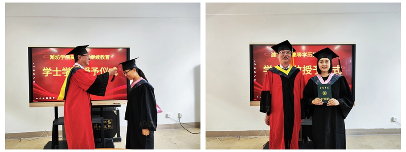 学位评定委员会委员、继续教育学院副院长金永辉宣读了《潍坊学院关于授予周军涛等563名2023届成人高等教育本科毕业生学士学位的决定》。