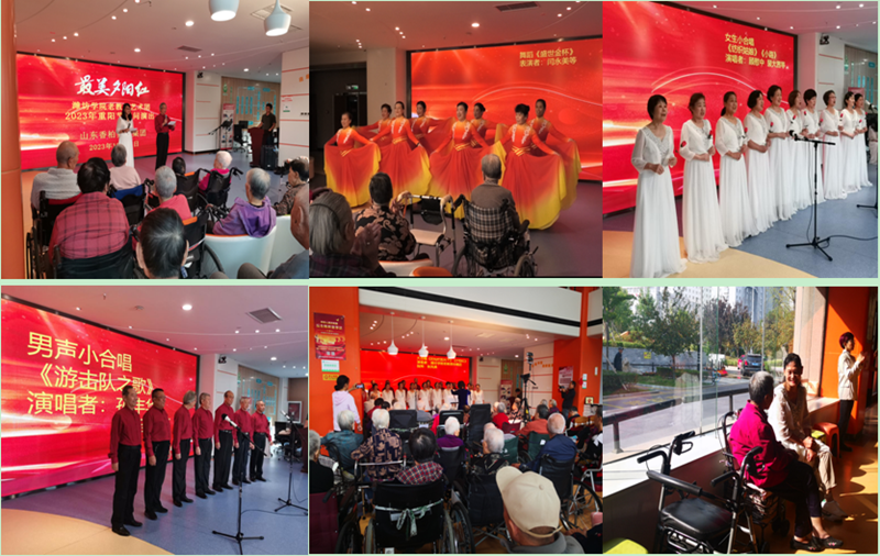 看到慰问人员的到来,老人们很是开心。艺术团成员精心准备了形式多样的节目,有舞蹈、诗词朗诵、独唱、小合唱及大合唱等,演出持续一个半小时。慰问演出在欢乐祥和的氛围中顺利结束,有的老人留下了激动的眼泪,有些老人仍久久不愿离开。演出结束后,艺术团成员在工作人员的带领下,先后参观了老人们的宿舍和健身娱乐场所,与老人们亲切交流,询问他们的身体情况和生活起居情况。