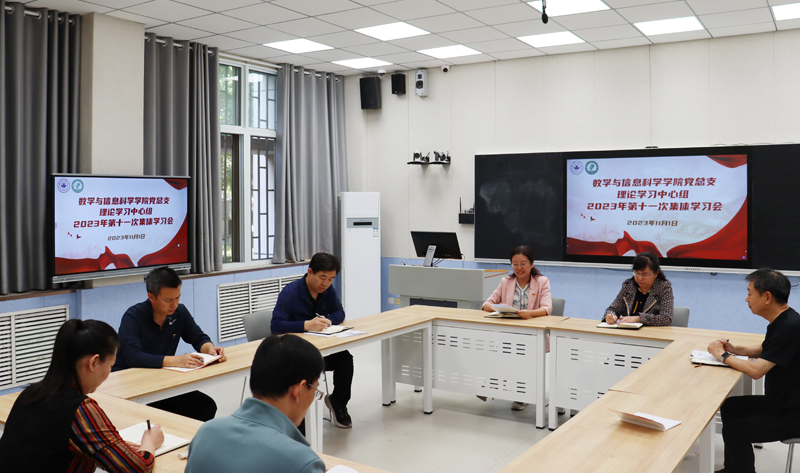 本网讯 11月1日,数学与信息科学学院召开党总支理论学习中心组第十一次集体学习会,专题学习学校第四次党员代表大会精神。会议由该院党总支书记周莹主持,理论学习中心组全体成员参会。