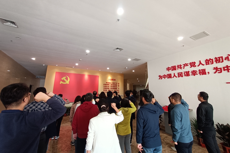 在海阳地雷战党性教育中心,大家观看了以“人民的力量”为主题的展陈。一件件锈迹斑斑的杀敌利器,一行行模糊泛黄的血色字迹,一段段动人的故事,让大家重温了那段波澜壮阔的红色岁月,感受了海阳人民敢于担当舍身报国的家国情怀,敢为人先大胆创新的聪明智慧,彰显了共产党与老百姓生死与共的军民鱼水情深。大家认真听取工作人员讲解,不时驻足观看,询问具体细节。在陈列馆大厅,全体党员面对党旗,高举右手,重温入党誓词。