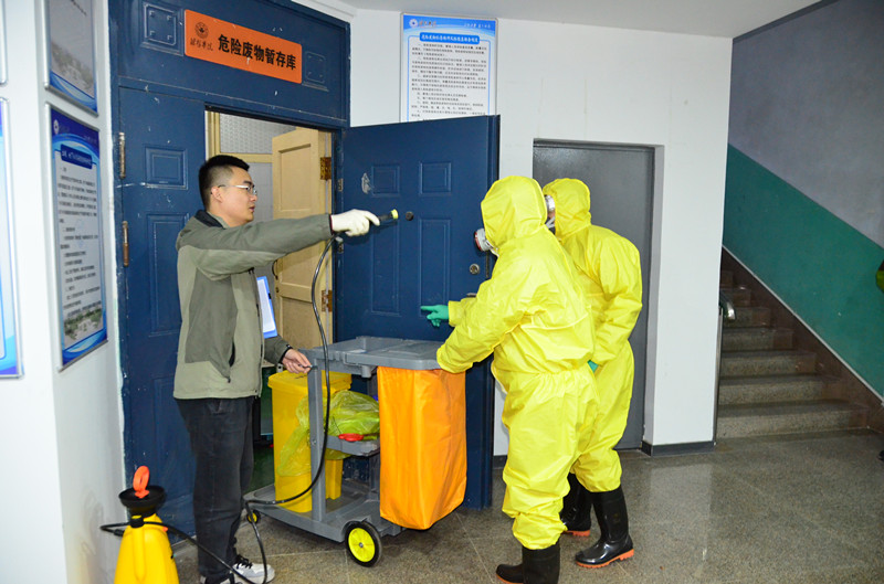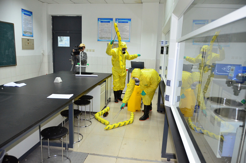本网讯 11月9日下午,学校教务处联合安全保卫处、后勤服务处(校医院)、化学化工与环境工程学院在3号教学楼开展实验室危险化学品泄漏暨学生昏迷突发安全事故应急演练,科研处、学科建设与研究生教育处、资产与实验室管理处、种子与设施农业工程学院、生物与海洋学院相关人员及学生近100人参加演练。