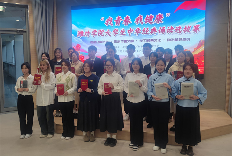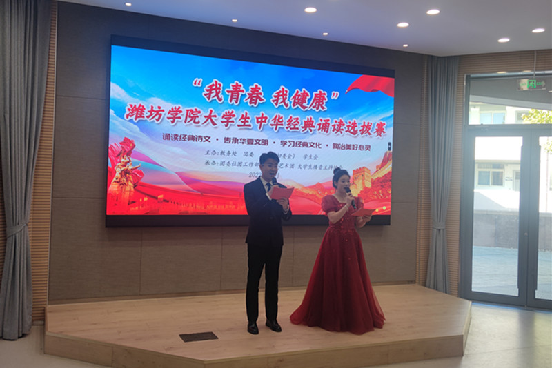 本网讯 11月17日,由教务处、团委、工会(妇委会)、学生会主办,团委社团工作部、大学生艺术团、大学生播音与主持协会承办的“我青春·我健康”大学生中华经典诵读大赛校级选拔赛在知新楼第二学术报告厅举行。