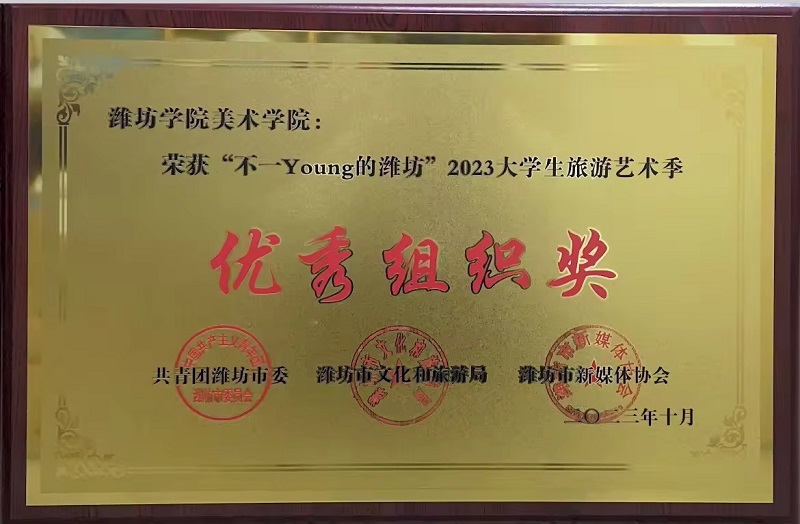 此次活动,我校美术学院荣获优秀组织奖,张华堂荣获优秀指导教师奖,2021级机器人工程专业鲍文玉获“打卡潍坊·2023大学生摄影大赛”二等奖,2021级书法学专业李成校荣获“打卡潍坊·2023大学生摄影大赛”优秀奖,2022级社会体育指导与管理专业陈鋲硕、2022级会计学本科专业王金宁获“2023大学生街舞挑战赛”优秀奖,2021级动画专业杜豪获“大学生旅游攻略创意创新大赛”优秀奖。