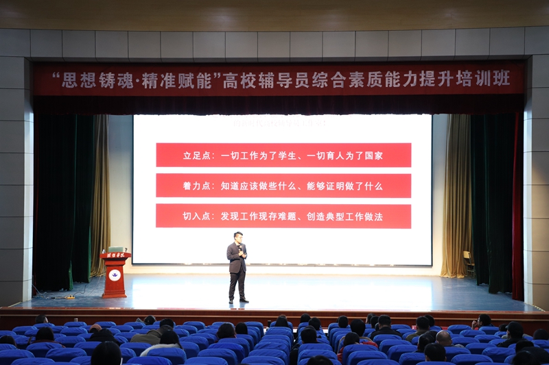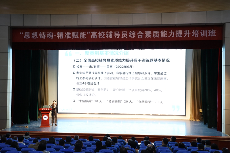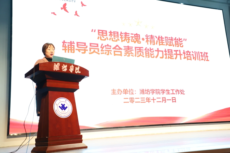 本网讯 为推动学习贯彻党的二十大精神走深走实,落实立德树人根本任务,强化辅导员队伍建设,提高学生思想政治教育工作质量,12月1日,我校举办“思想铸魂·精准赋能”辅导员综合素质能力提升培训班,部分驻潍高校学工队伍优秀代表以及我校专职辅导员到场参加。