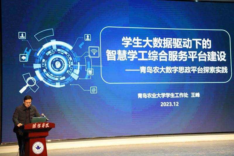 王峰处长从智慧学工综合服务平台的建设背景、建设历程以及校园内相关服务问题的分析引入,从平台介绍、创新亮点、场景应用和预期成效四个方面做题为“学生大数据驱动下的智慧学工综合服务平台建设”的报告。他强调,该平台服务范围涵盖广,在学生学习和生活管理、资助、心理健康、线下实践、组织管理、数据统筹等方面皆有涉及,是一个功能强大的信息平台。