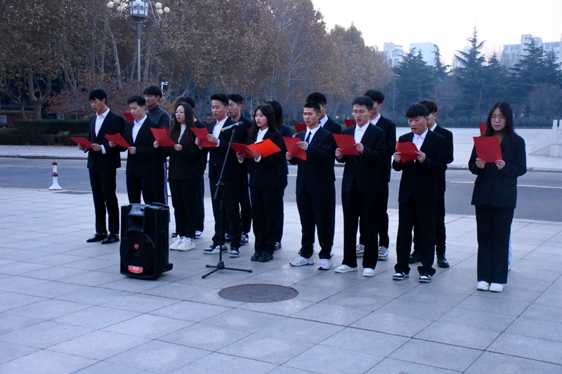 随后,与会人员举行了国家宪法日“宪法晨读”活动。各学院学生代表共同进行宪法晨读,重点学习了宪法的地位、作用以及重要宪法条文,有效提高同学们对宪法的认识和理解,增强法治意识,培养责任感和参与意识,共同建设法治社会。政法学院2021级学生代表刘英姿宣读以“汲取宪法精神,树立法治信仰”为题的国家宪法日倡议书,倡议同学们要发自内心的拥护宪法,严格遵守宪法和法律,维护宪法和法律的尊严,推动形成尊法、学法、守法、用法的良好风尚,时刻忠于祖国和人民,为实现中华民族伟大复兴的中国梦而奋斗。