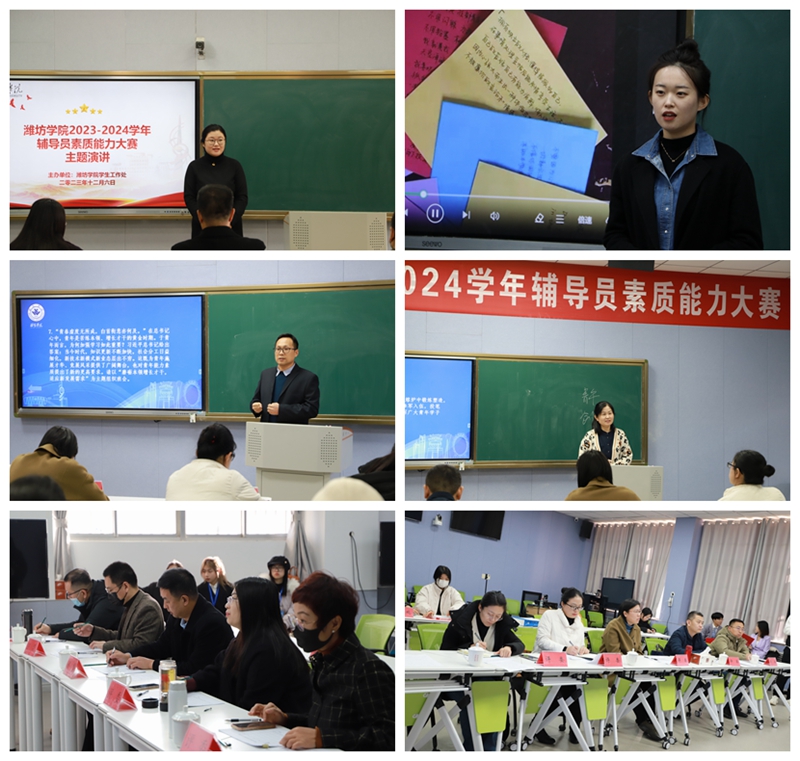 本网讯 为深入学习贯彻习近平新时代中国特色社会主义思想和党的二十大精神,提升我校辅导员理论水平、职业素养和工作能力,2023年12月6日,我校举办2023-2024学年辅导员素质能力大赛主题演讲、主题班会环节。本次大赛由学生工作处(学生工作部、武装部)主办,共有来自20个学院的41名辅导员参加。