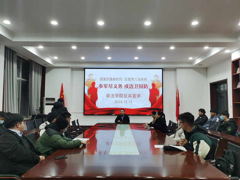 本网讯 12月13日,政法学院在人合楼8314会议室召开“参军尽义务 戍边卫国防”征兵宣讲活动。学院党总支书记曹兴波出席并讲话。
