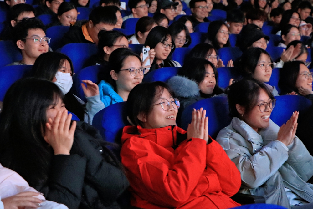 活动汇聚京剧、吕剧、相声、快板等多种艺术形式,为师生呈现了一场融合传统与青春的文化盛宴。京剧《挑滑车》以精湛的武生表演拉开序幕,吕剧《姊妹易嫁》《借年》《小姑贤》轮番上演,真挚唱腔和生动情节展现了山东地方戏的质朴魅力。相声《杂学唱》妙趣横生,快板《家风》节奏明快,在朗朗竹板声中传递了优良家风家训。压轴剧目京剧《霸王别姬》以细腻唱腔和深情演绎赢得全场喝彩。艺术家们以精湛的技艺、圆润的唱腔和富有感染力的舞台表现,生动展现了传统戏曲的深厚底蕴与艺术价值。