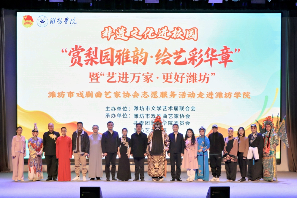 本网讯  1027日,非遗文化进校园赏梨园雅韵·绘艺彩华章艺进万家·更好潍坊潍坊市戏剧曲艺家协会志愿服务活动学校图书馆报告厅举行学校党委委员、副校长任立春,潍坊市文联党组成员、副主席邱兆锋,潍坊市戏剧曲艺家协会主席刘淑娟,潍坊艺术剧院总经理富荣,潍坊市戏剧曲艺家协会副主席李全忠、张华出席活动。