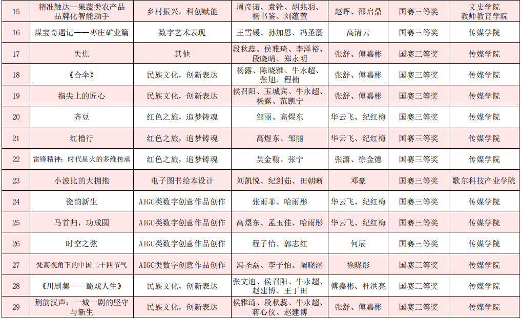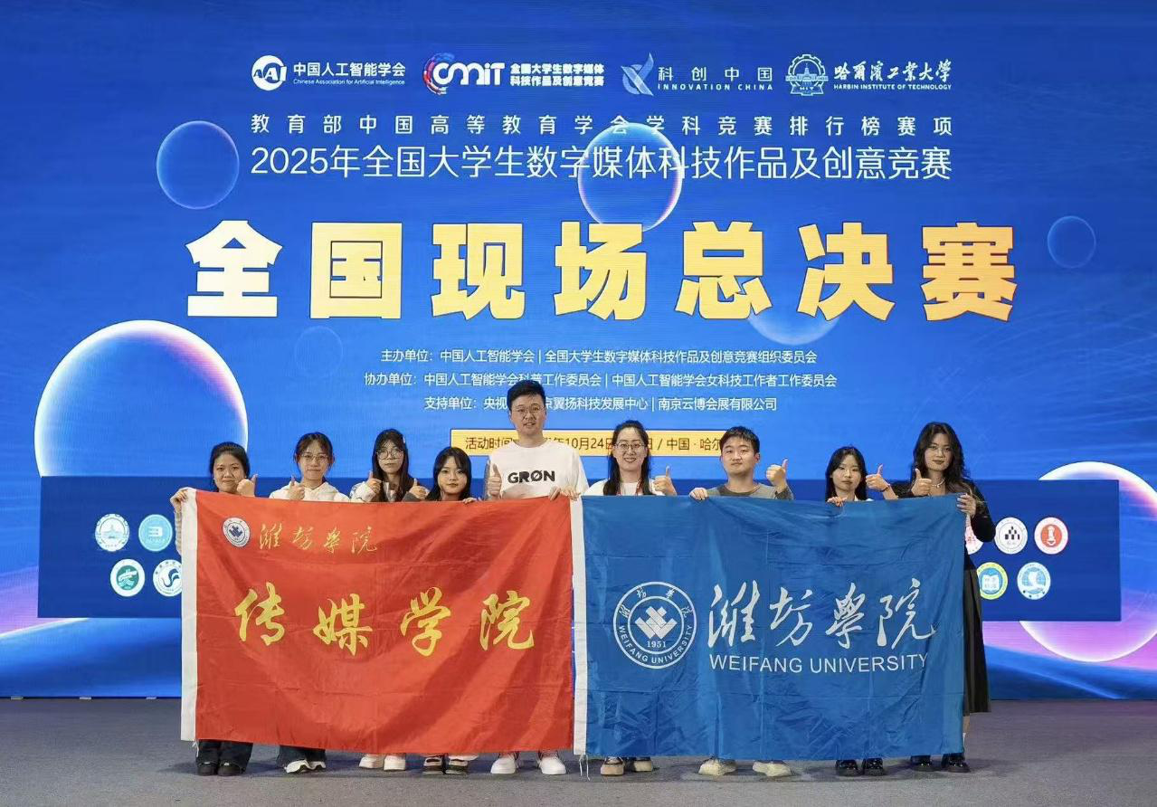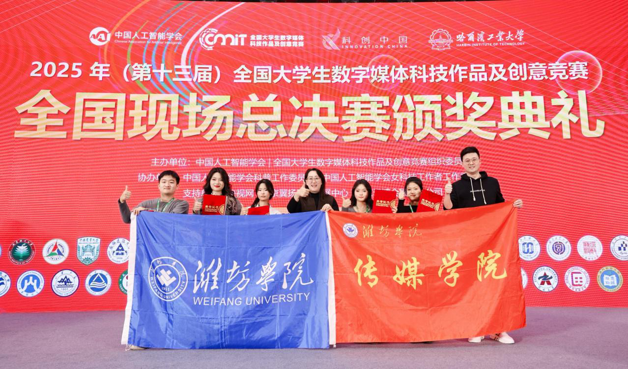 本网讯  近日,第十三届“全国大学生数字媒体科技作品及创意竞赛”全国总决赛落幕。学校传媒学院、数学与统计学院、机械与自动化学院(天瑞磁悬浮产业学院与其合署、潍柴产业学院)、文史学院(文化与旅游学院)、教师教育学院(特教幼教师范学院)、歌尔科技产业学院组建团队参赛,他们凭借扎实的专业功底与创新创意,共获国家级一等奖5项、二等奖2项、三等奖22项。