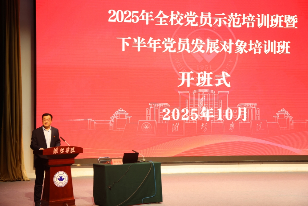 本网讯 10月30日,学校2025年全校党员示范培训班暨下半年党员发展对象培训班开班。学校党委委员、组织部部长赵加强出席开班式并作动员讲话。