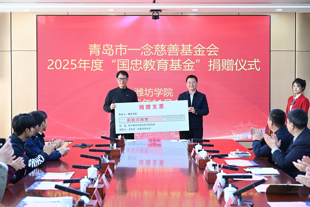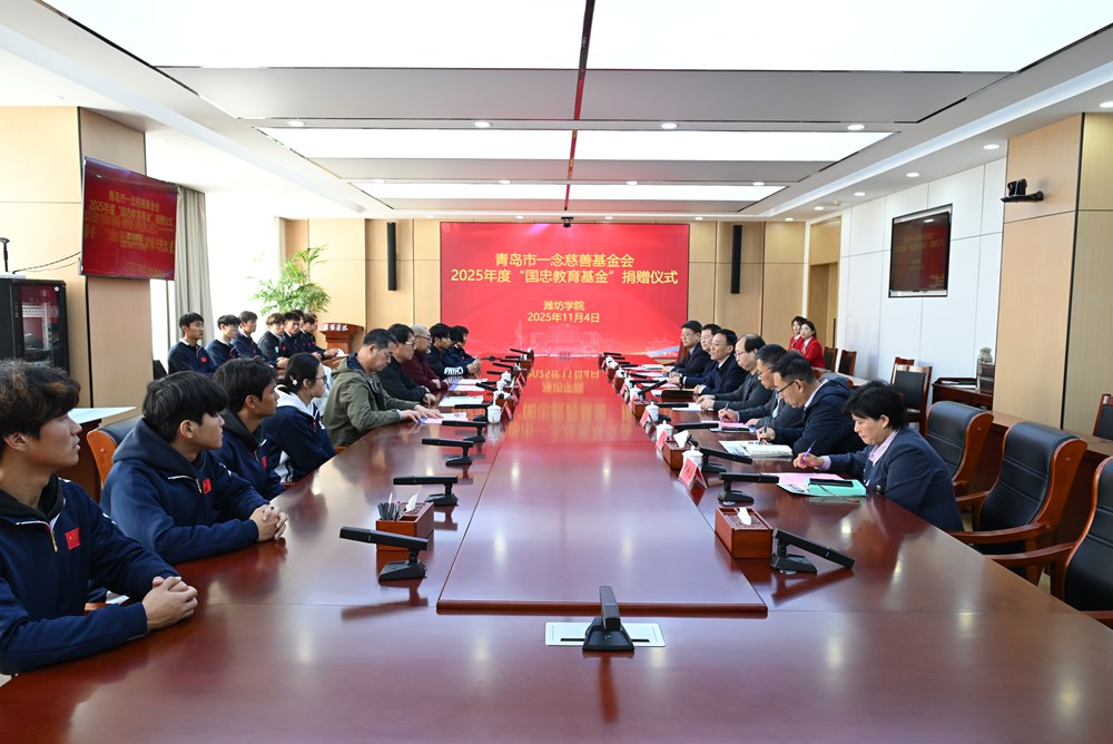 本网讯  11月4日,青岛市一念慈善基金会2025年度“国忠教育基金”捐赠仪式在学校举行。山东力威集团董事长、青岛市一念慈善基金会理事长刘国忠,青岛市一念慈善基金会秘书长王唯,学校党委书记来逢波,党委委员、副校长李英德、任立春出席仪式。