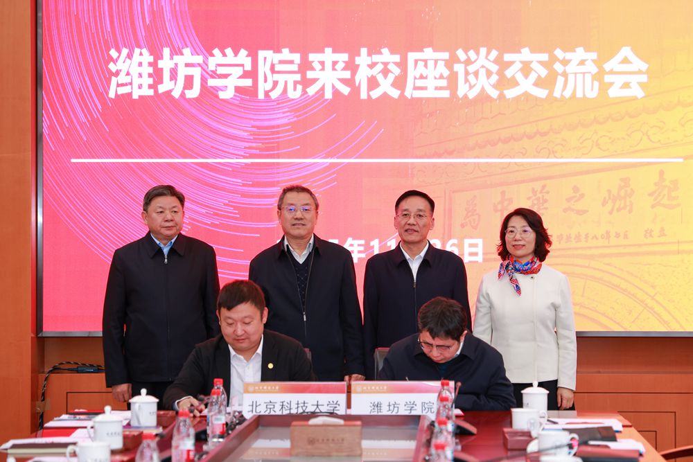 武贵龙对来逢波一行表示欢迎,并系统介绍了北京科技大学在学科建设、科研创新与人才培养等方面取得的成果。他期望两校能以此次签约为契机,在重点实验室共建、科研项目联合申报、学生协同培养等方面开展深度交流,共谋教育高质量发展。下一步,北京科技大学将积极开放优质资源,围绕学科建设与科研提升与潍坊学院展开多维度合作。同时,潍坊学院作为北京科技大学科技成果转化的重要应用场景与承接平台,将持续促进创新资源与区域发展需求有效对接,实现产学研融合共赢。