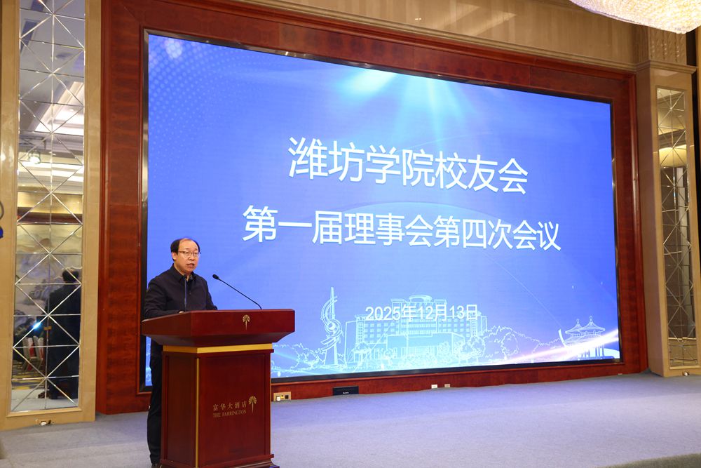 本网讯   12月13日,潍坊学院校友会第一届理事会第四次会议召开。学校党委副书记、校长王霞出席会议并讲话,学校党委委员、副校长、校友会常务副会长李英德主持会议并作校友会理事会2025年工作报告。