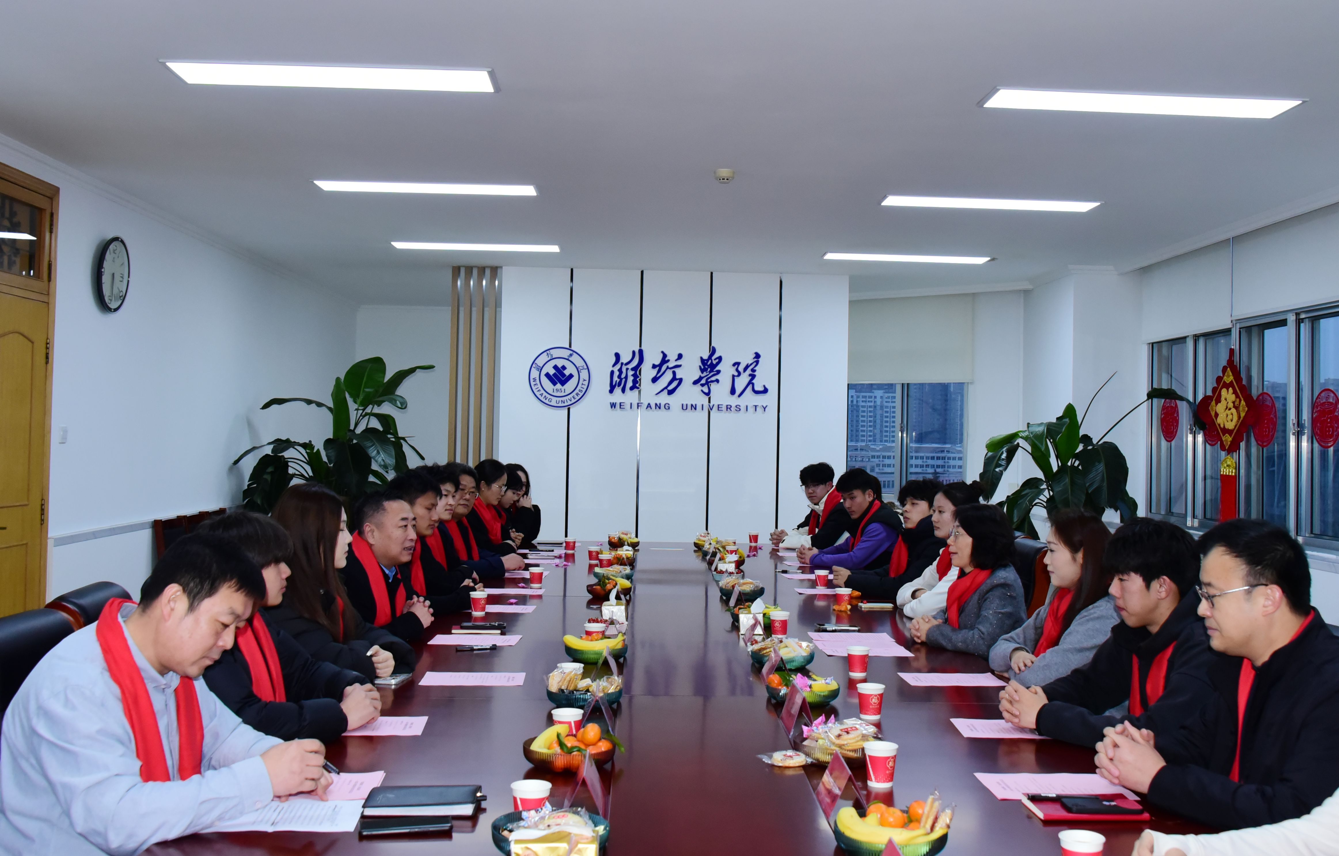 王霞代表学校党委、行政向全体寒假留校学生,特别是参与潍坊市春晚彩排及大运会训练的学生致以节日问候。她回顾了2025年学校在办学层次、学科建设、教学科研、学生竞赛等方面取得的成绩,对同学们寒假期间坚守校园、刻苦训练、积极备演的认真态度和责任担当给予肯定,并勉励大家要以安全为基、勤学为径、同心为帆,科学规划时间,在互帮互助中增进情谊,在勤学笃行中共同进步。