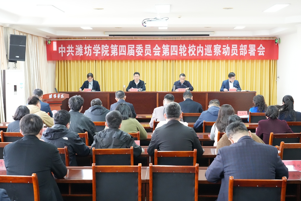 本网讯 3月30日,学校召开中共潍坊学院第四届委员会第四轮校内巡察动员部署会,党委副书记、党委巡察工作领导小组副组长王守全出席会议并讲话。会议由学校纪委书记、监察专员、党委巡察工作领导小组副组长武玉杰主持,党委委员、宣传部部长张晓静出席会议。