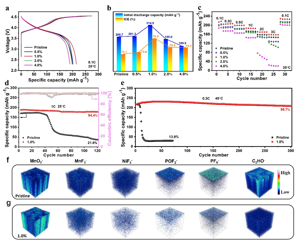 富锂锰基正极是高潜力锂离子电池关键材料,却存在初始库仑效率低、电极/电解质界面不稳定、高压下容量衰减快、循环性能差等瓶颈。团队采用钙钛矿 Li3/8Sr7/16Ta3/4Zr1/4O3表面包覆改性,有效破解界面难题、提升高压循环稳定性,揭示涂层调控机制,为该材料界面工程化改性提供新思路与理论支撑,对先进锂电正极材料研发具有重要指导意义。