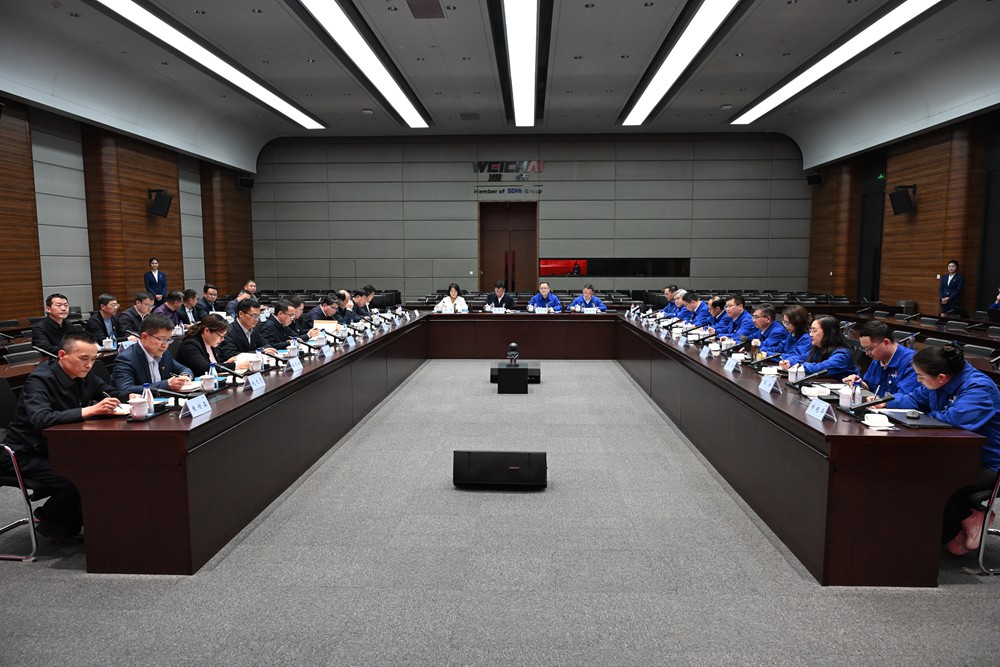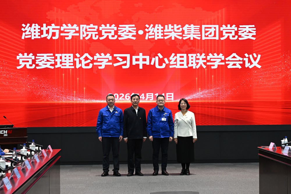 本网讯 为深入学习贯彻习近平总书记关于树立和践行正确政绩观的重要论述,深化校企协同育人,共商产教融合高质量发展新路径,4月14日下午,学校党委与潍柴集团党委开展理论学习中心组联学活动。学校党委书记来逢波,党委副书记、校长王霞,潍柴集团党委书记、董事长马常海出席活动。会议由潍柴集团党委副书记、工会主席黄维彪主持。