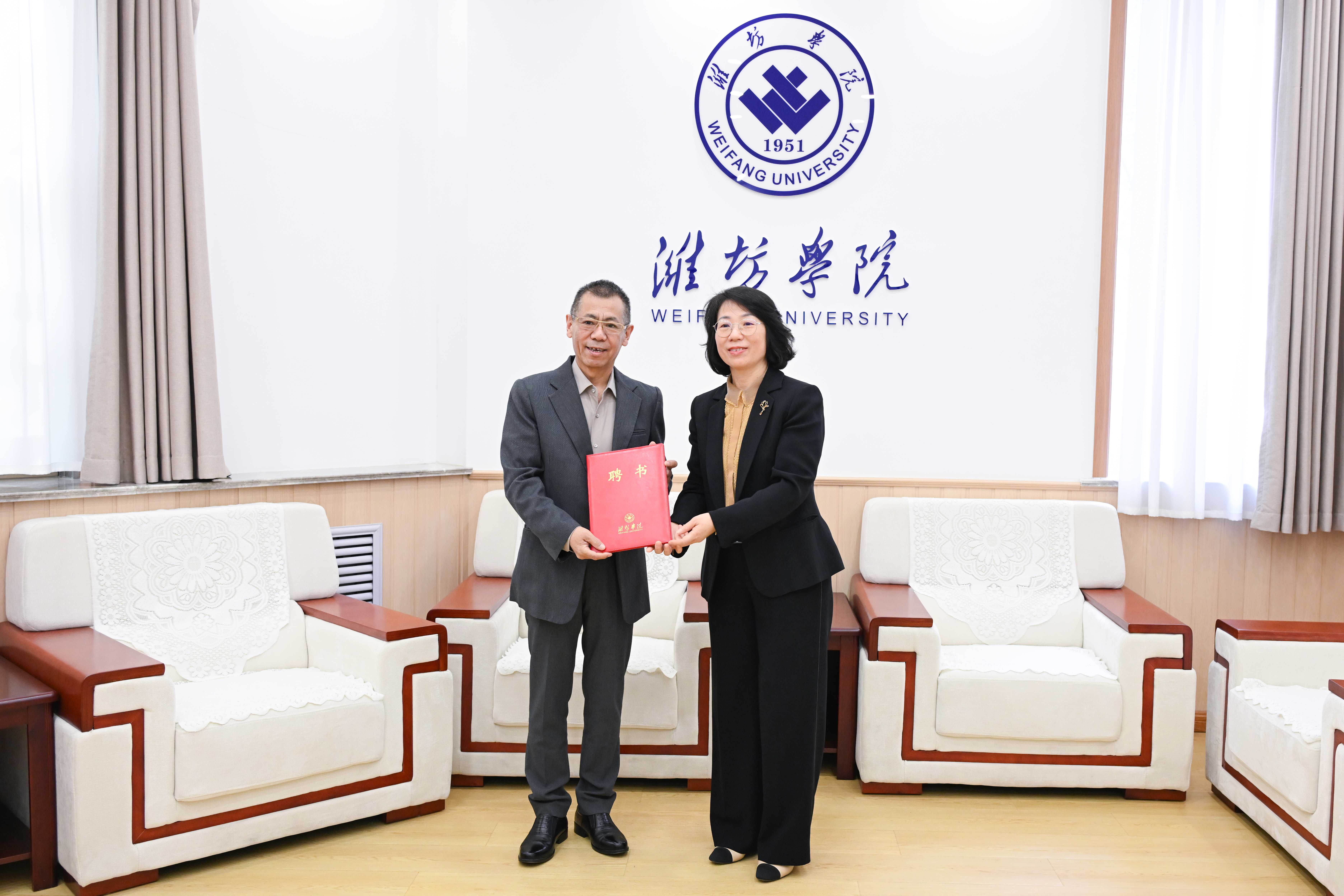 会前,学校党委副书记、校长王霞会见了中国乐器协会理事长孙瑞勇,并为其颁发客座教授聘书。
